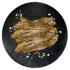 У міру солоний на смак, має приємний запах морської риби.